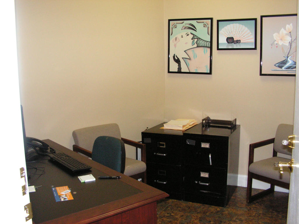 Here's a sample of Angel's staff work area, (*this picture shows desks non-complete, but their desks are complete and where staff are currently working. Floor plan is open with smaller offices (like Angel's) around the outer walls (total footprint around 1,500 sq feet,