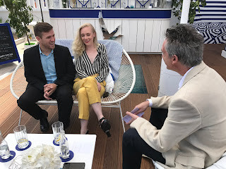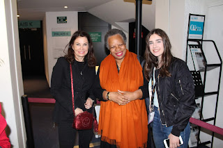 Business of Film Publisher ELSPETH TAVARES (center) attended the Cannes Market Screening of "DAISY WINTERS" and spoke afterwards with producer JANE BADLER-HAINS (left) and title star STERLING JERINS (right)
