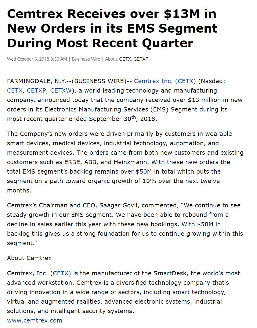 $CETX NEWS! Cemtrex Announced that the company rec