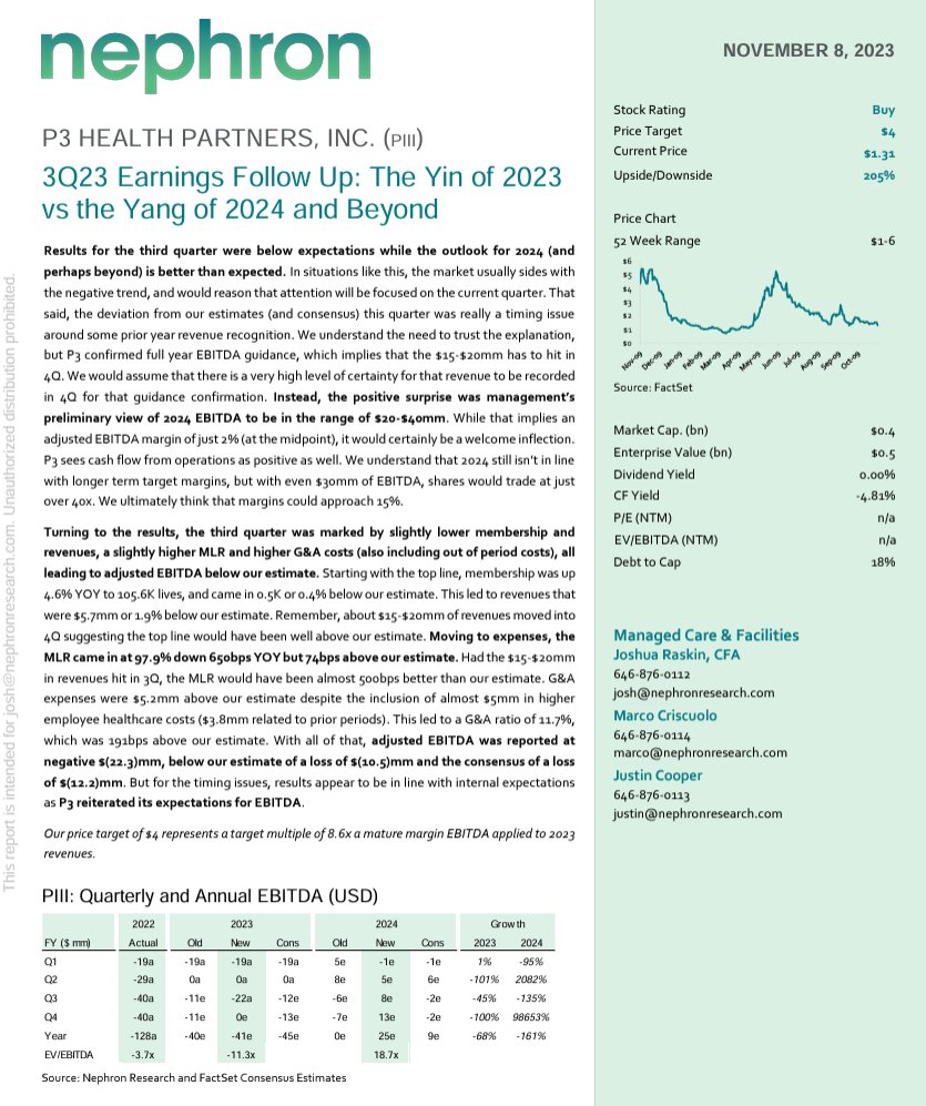 $PIII P3 HEALTH PARTNERS, INC. (PIII) 3Q23 Earning