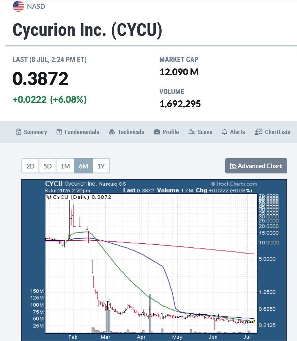 $CYCU .3872 +6.08% @Cycurion RSI(14) 47.83 climbi