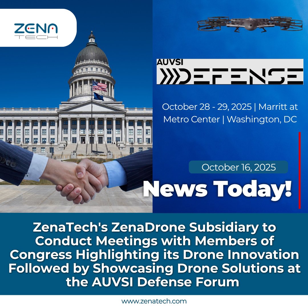 “Our ZenaDrone subsidiary is committed to becoming a trusted supplier of drone solutions to US defense agencies and NATO. Through Capitol Hill engagement and participation at forums like AUVSI Defense, we believe we are building important relationships that will position us as an innovative and active voice in the drone industry,” said Shaun Passley, Ph.D., CEO of ZenaTech.