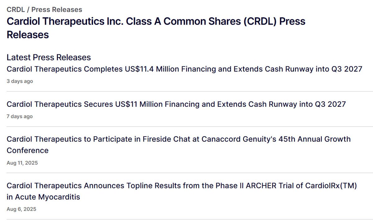 $CRDL Cardiol Therapeutics Inc. Press Releases: