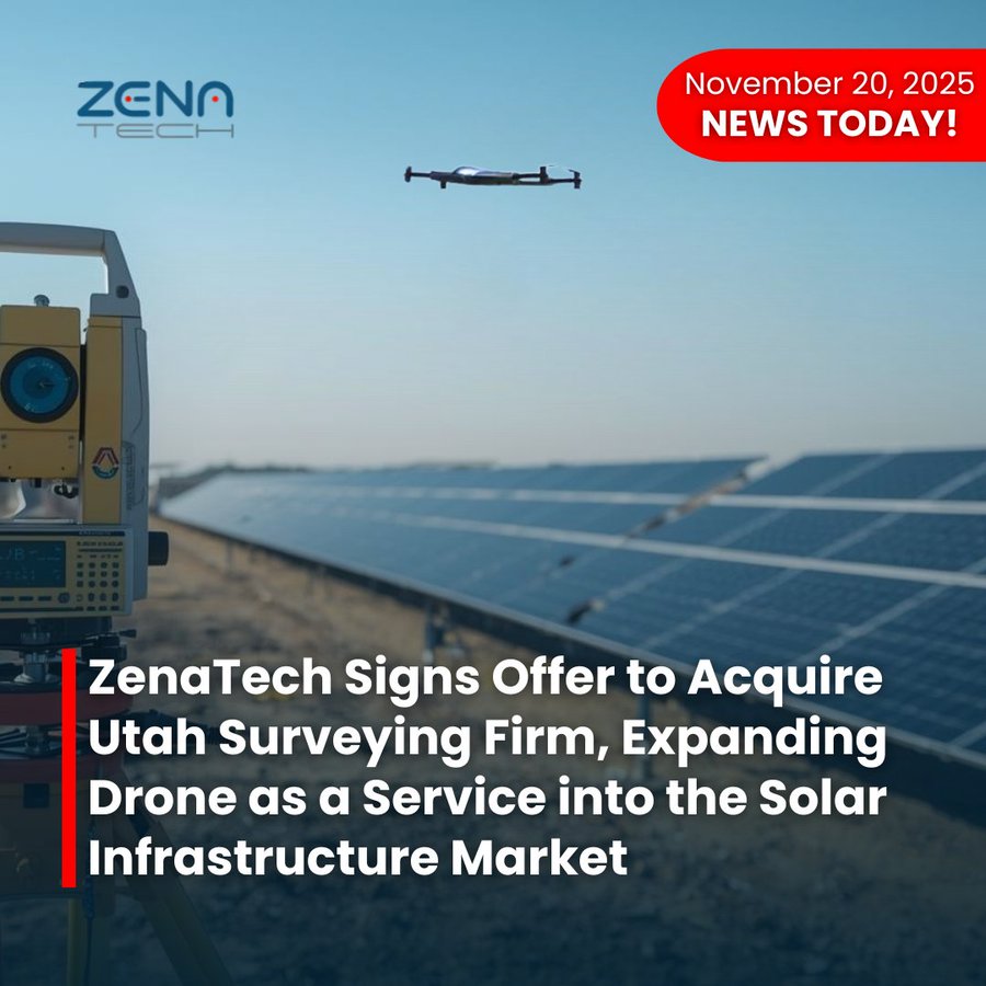 $ZENA ZenaTech announces it has signed an offer to acquire a well-established Utah-based commercial surveying and 3D mapping company specializing in LiDAR processing, drone-enabled data capture, and large-scale solar site development clients. This acquisition represents ZenaTech’s strategic entry into the fast-expanding solar infrastructure market, unlocking new growth avenues for advanced aerial data services for developers engaged in planning, design, construction, and maintenance of solar farms and other solar energy projects.